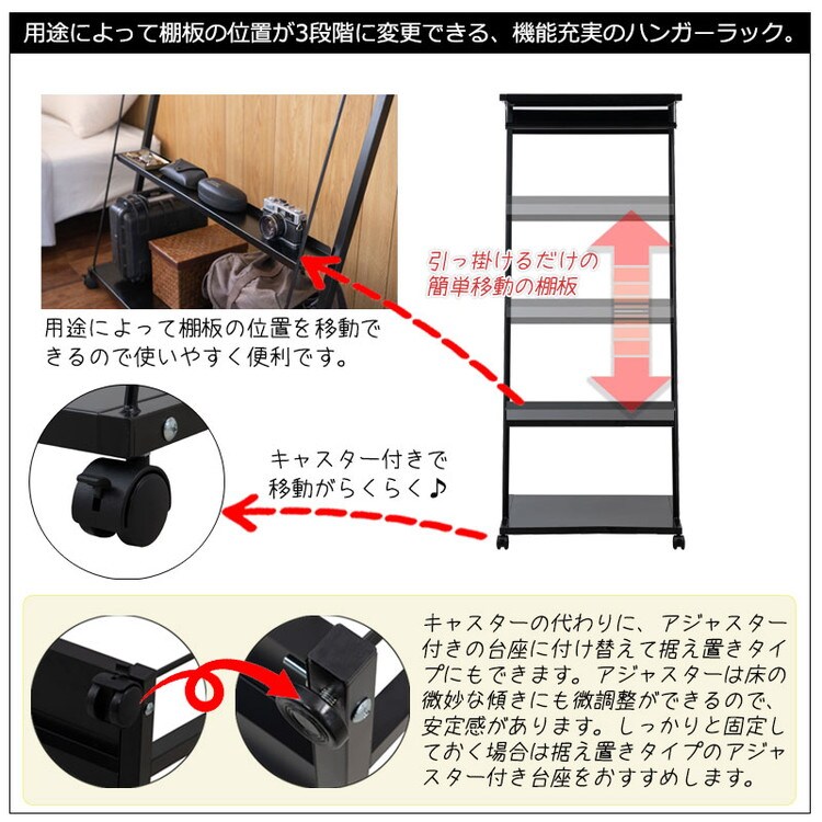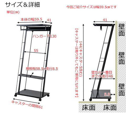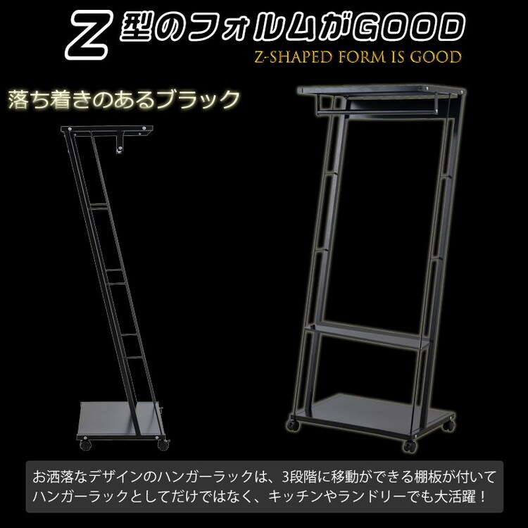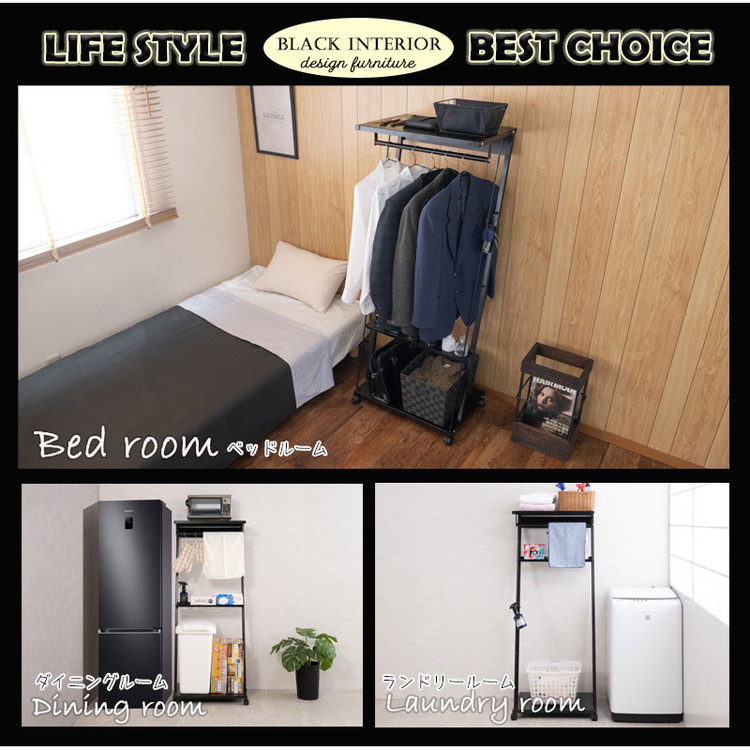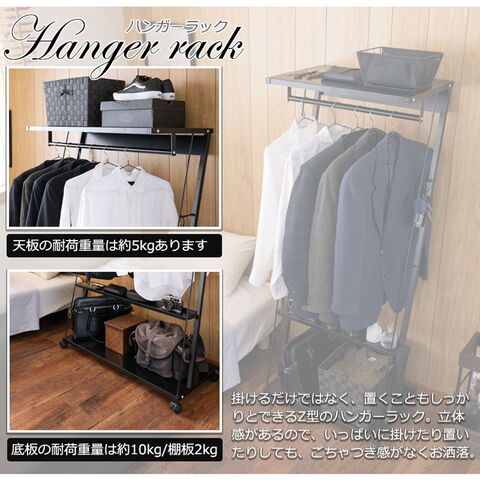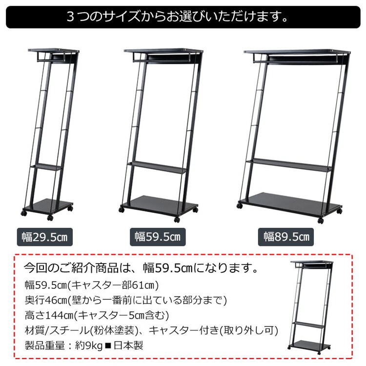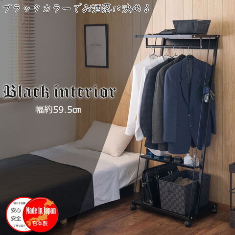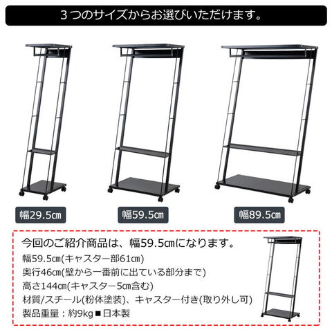ハンガーラック ラック ブラック 黒 幅60 キャスター付き スチールラック リビング 寝室 衣類収納 ハンガー 洋服掛け 洋服ハンガー 洋服収納 ダイニング ベッドルーム【送料無料】