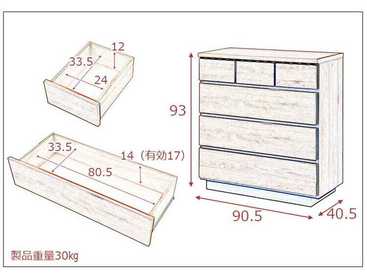 引出内寸(大):約幅80.5×奥行33.5×深さ14cm