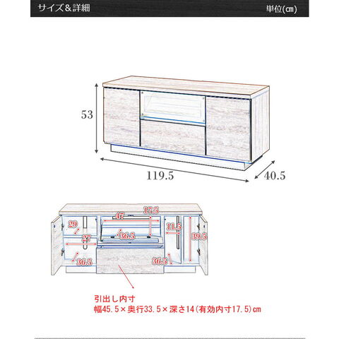 引出し内寸:約幅45.5×奥行33.5×深さ14cm