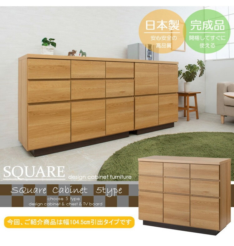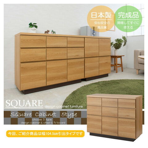 大川家具 日本製 float スクエア キャビネット 幅104.5 扉引き出しタイプ スクエア 木目調 木製 ラック 収納 リビング 大容量 ワイド 本棚 ブックラック おしゃれ 北欧 木製【送料無料】