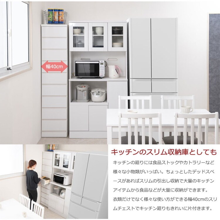 日本製 完成品 収納 ホワイト 白 幅40cm 収納棚 衣替え 寝室 衣類収納 ホワイト シンプル キッチン 収納庫 食品ストック カトラリー収納 すきま収納 隙間収納【送料無料】