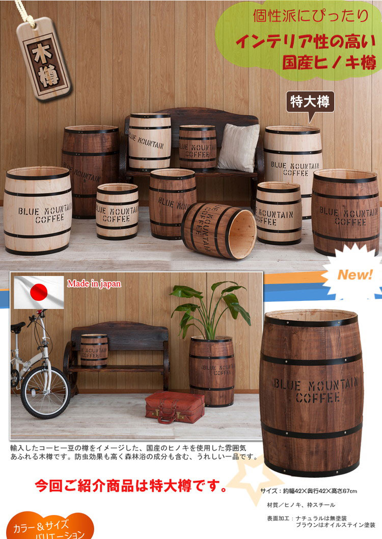 日本製 収納 タル 幅42cm 高さ67cm ナチュラル 樽 天然木 トイレラック プランター 傘立て 檜 ヒノキ 収納ボックス おしゃれ 北欧【送料無料】