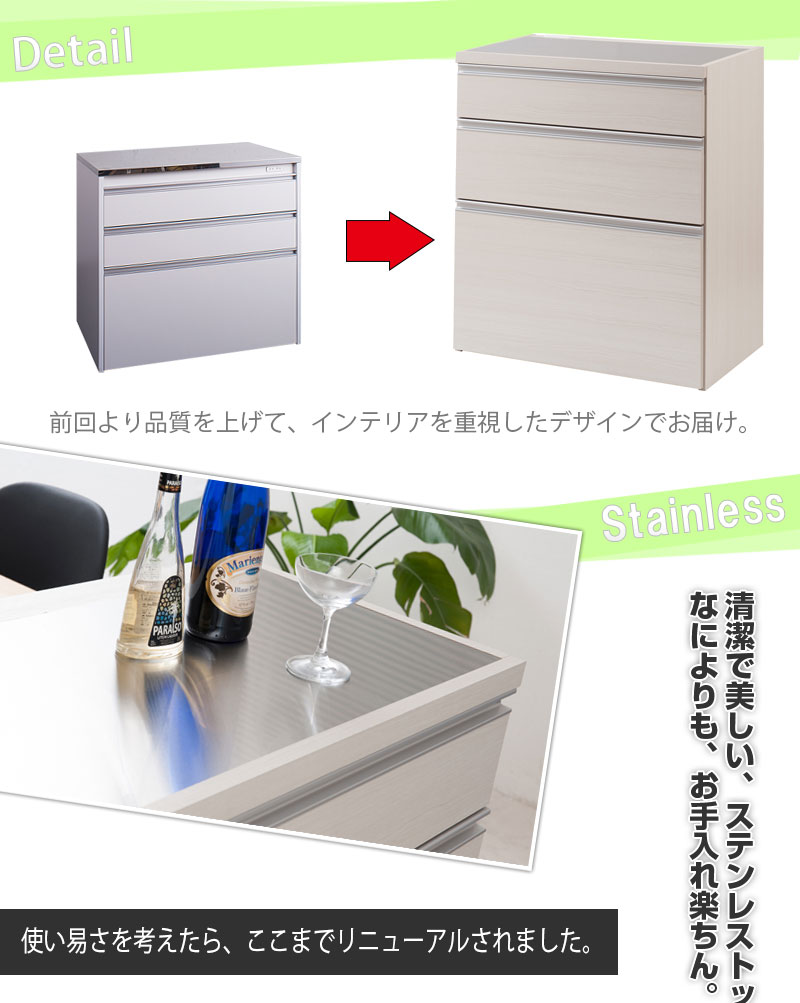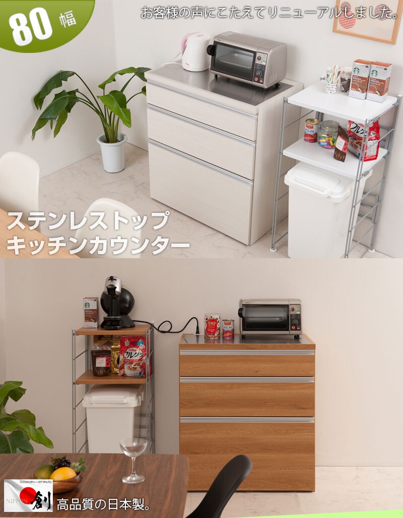日本製 完成品 ステンレス キッチンカウンター 幅80 木目調 ナチュラル カウンター キッチンカウンター レンジ台 大型レンジ対応 国産【送料無料】