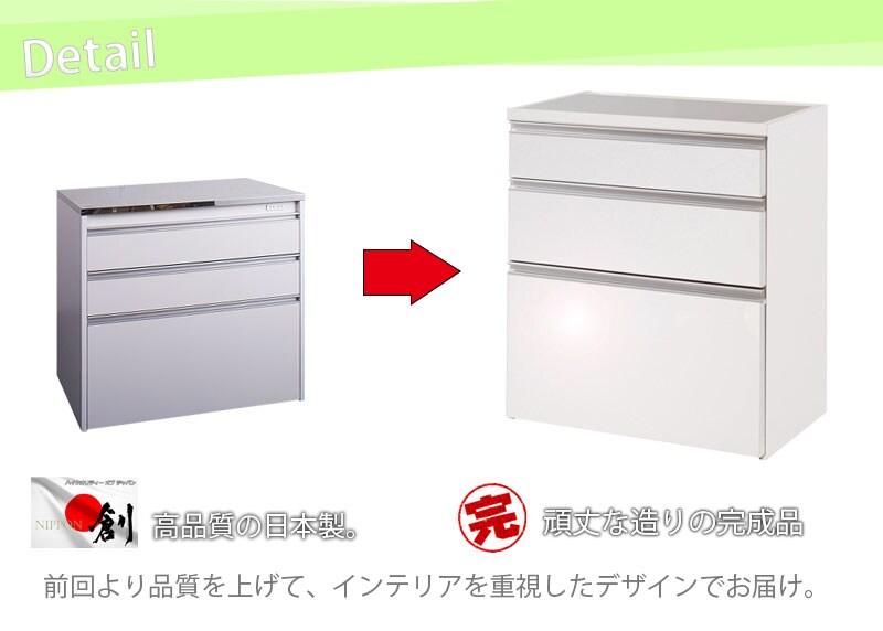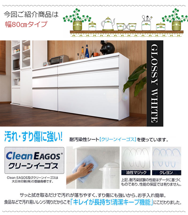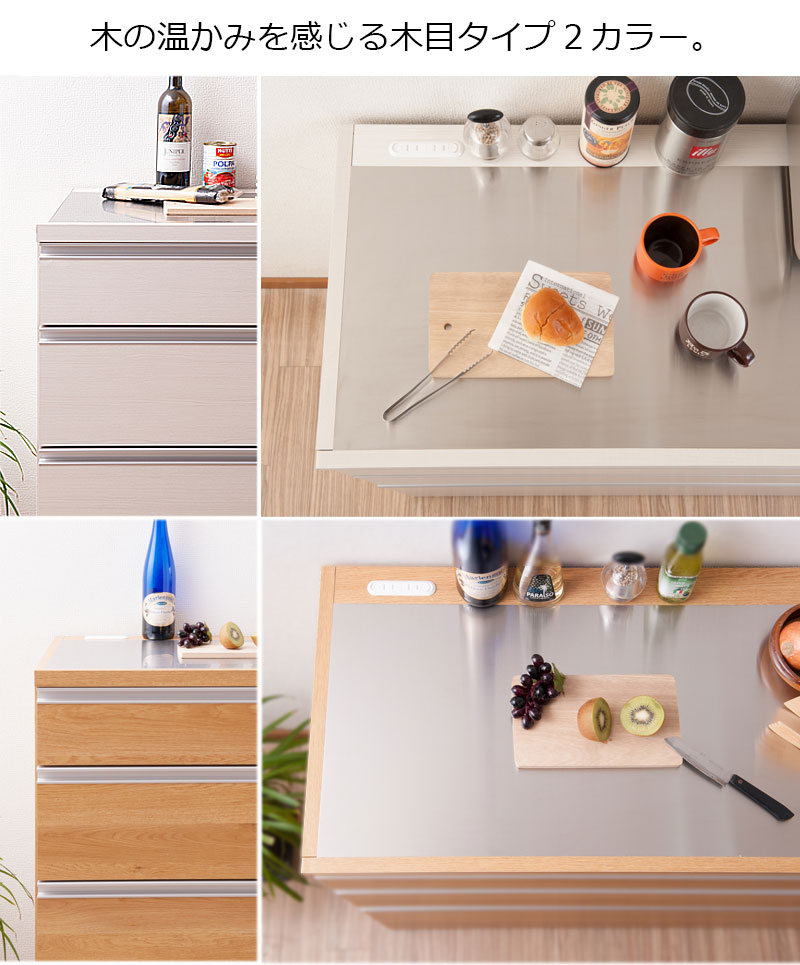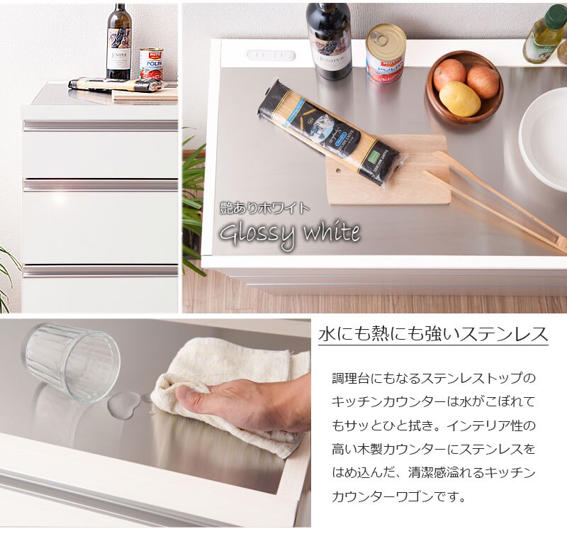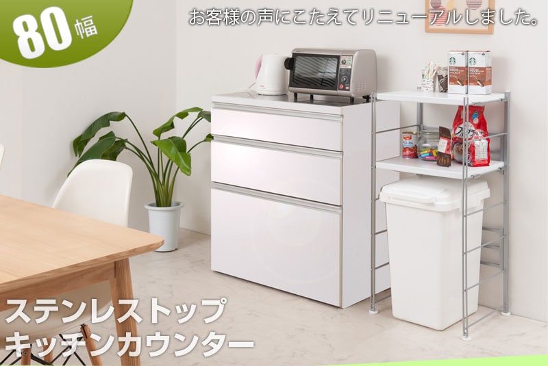 日本製 完成品 ステンレス キッチンカウンター 幅80 木目調 艶出しホワイト カウンター キッチンカウンター 大型レンジ対応 国産 レンジラック【送料無料】