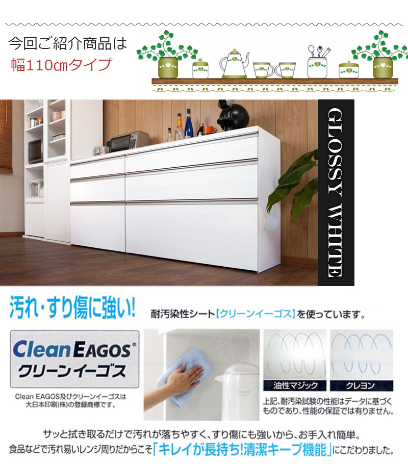 日本製 完成品 大川家具 キッチンカウンター 収納 幅110 110幅 レンジラック カウンター 食器棚 大容量 ホワイト 白 おしゃれ 北欧【送料無料】