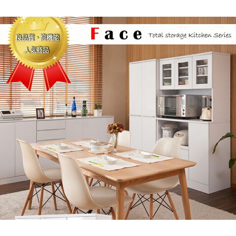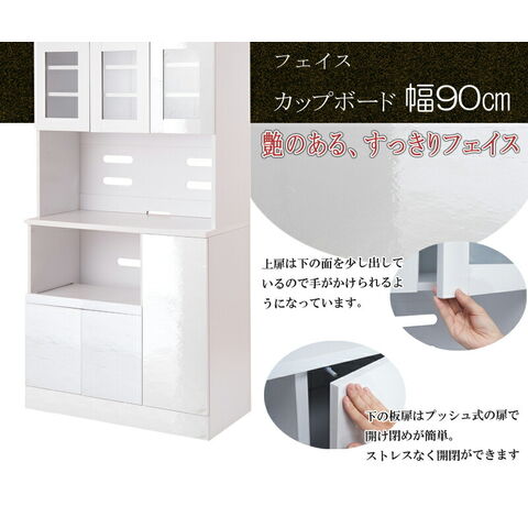 Face カップボード 幅90 ホワイト 白 キッチンカウンター キッチンボード 食器棚 大容量 電子レンジ対応 ガラス おしゃれ 北欧 収納【送料無料】