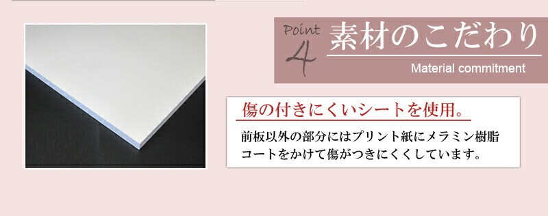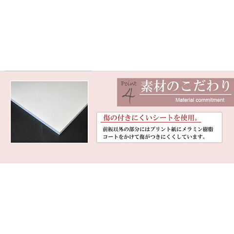 ■商品の仕様/前板・天板:ハイグロス化粧繊維板、その他:プリント紙化粧繊維板(傷に強い樹脂コート加工)