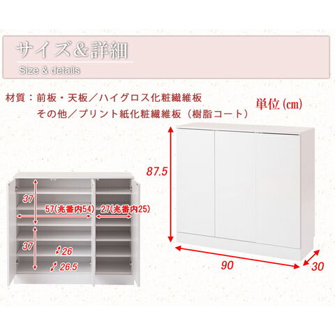 ■商品サイズ/本体:(約)幅90×奥行30×高さ87.5cm、扉内寸:左扉内(約)幅57(兆番内54)×奥行26×高さ37(固定棚挟み上下共通)cm、右扉内(約)幅27(兆番内25)×奥行26×高さ37(固定棚挟み上下共通)