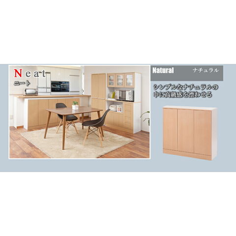 ■商品について/カウンター下のデッドスペースを造り付けの様なスッキリした収納庫で大量収納。前板には艶のある汚れに強いハイグロスシートを使用しており、水滴や付いてしまった汚れなどは、さっと拭くだけで簡単に拭き取れます。引出しタイプと幅の3種類ある扉タイプでカウンター下のスペースと収納物に合わせてお選び頂けます。スッキリと仕上げるために取っ手を使わず、プッシュ式の扉を採用。更に収納ポイントとして通常の3段の棚板よりも5段と多くし、細かく収納したり見分けがしやすいように考えられた商品です。