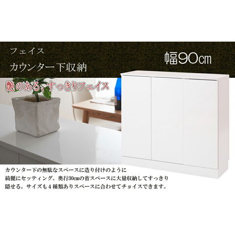 カウンター下収納 キッチン収納 face キャビネット 幅90 ホワイト 白 収納家具 キッチン ストッカー キッチンカウンター 食器棚 収納【送料無料】