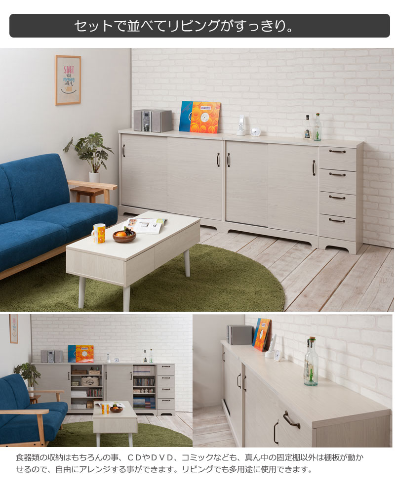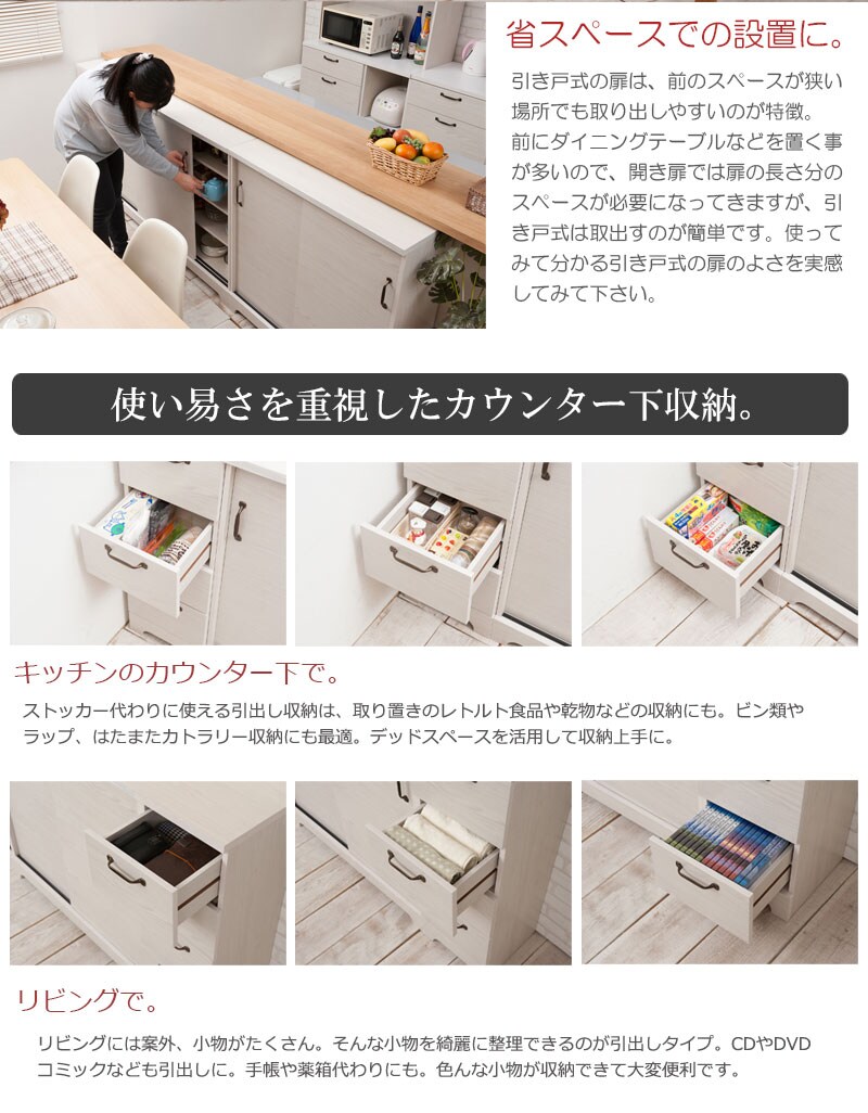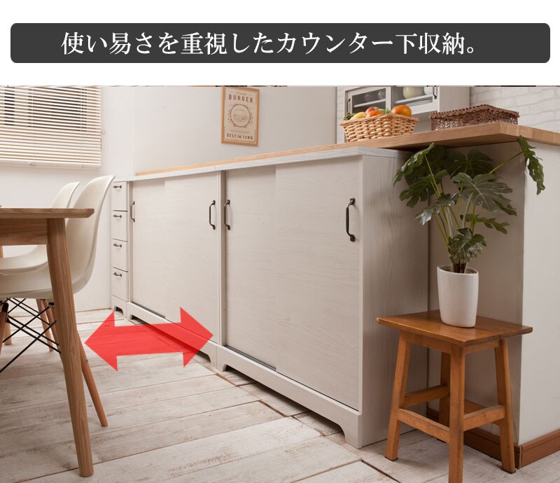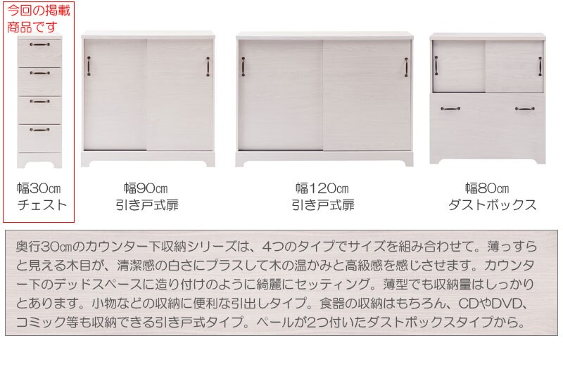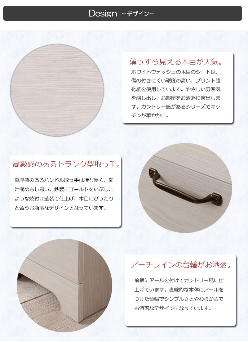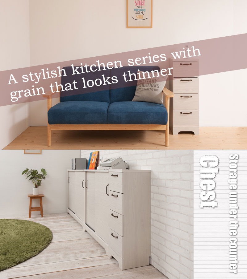 ■商品について/うっすら木目を生かしカントリーチックに仕上げたカウンター下シリーズ。