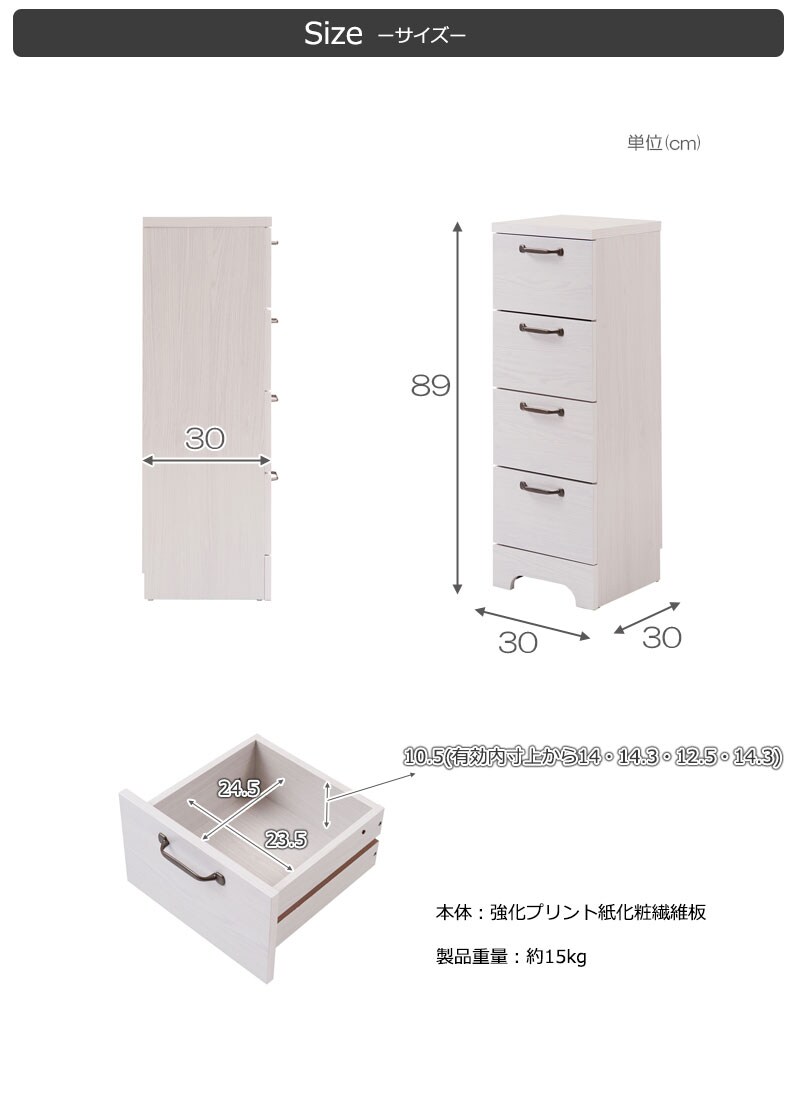 カウンター下 チェスト 幅30 四段 4段 カウンター ホワイト 白 スリム リビング 収納 引き出し 引出し おしゃれ アンティーク 北欧【送料無料】