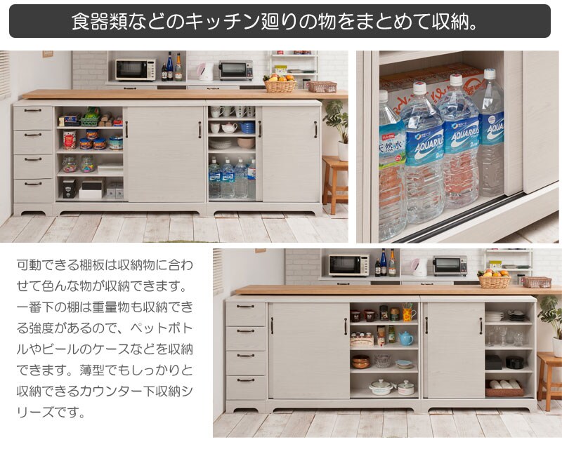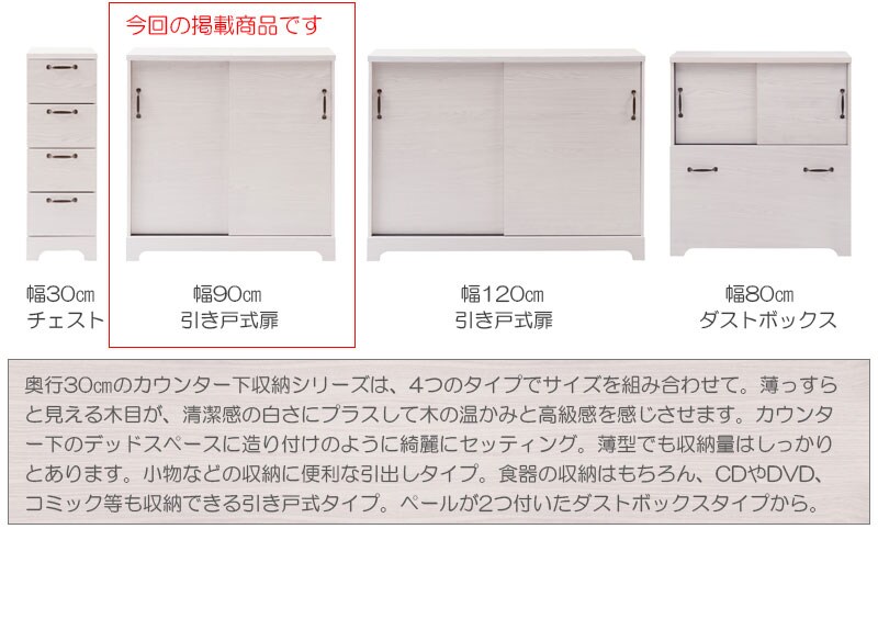 ■商品について/うっすら木目を生かしカントリーチックに仕上げたカウンター下シリーズ。