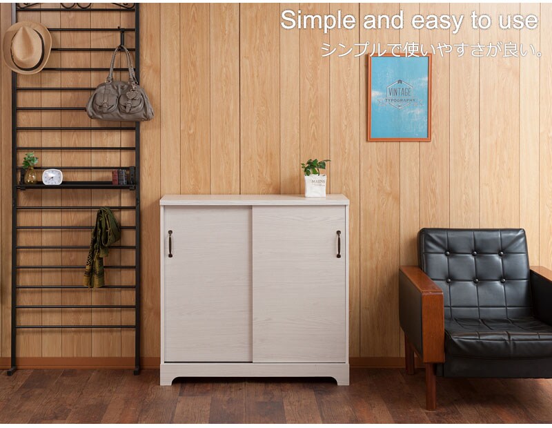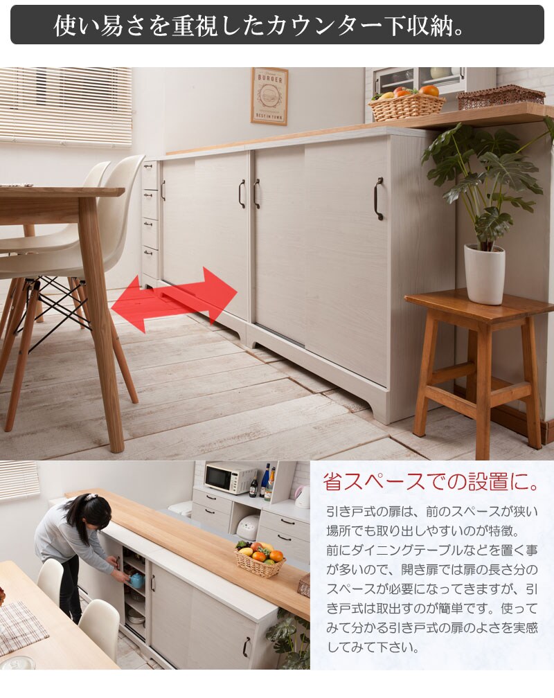 カウンター下 引き戸 キャビネット 90幅 ホワイト 白 リビング 引き戸 アンティーク おしゃれ 北欧 収納 カウンター おしゃれ 棚【送料無料】