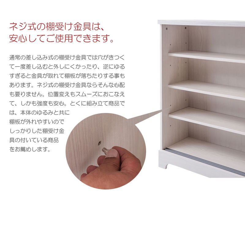 ■棚板/固定式2枚、可動式4枚(6.4cmピッチ・各3段階)