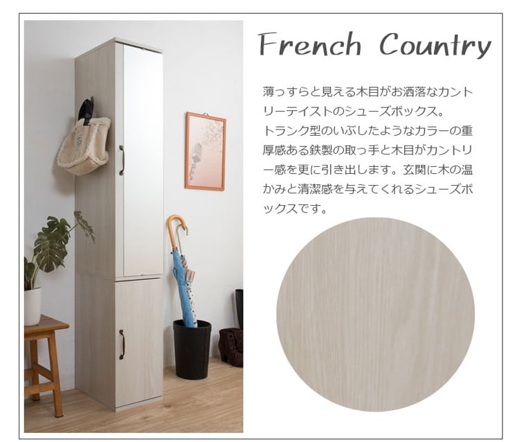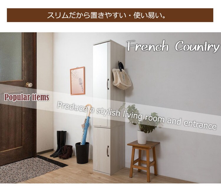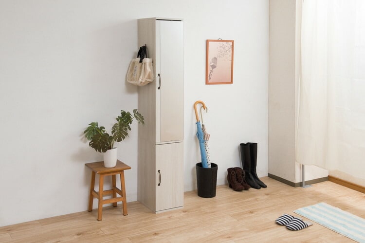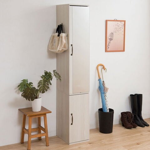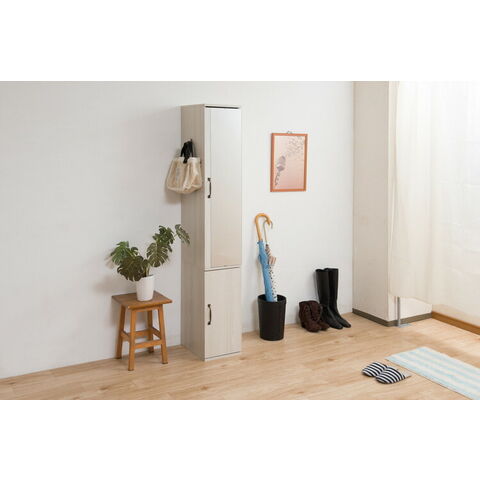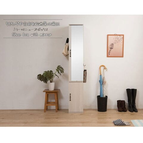 一人暮らしなどコンパクトに使えるミラー付きラックは木目の綺麗なホワイト、ナチュラルの2色から。