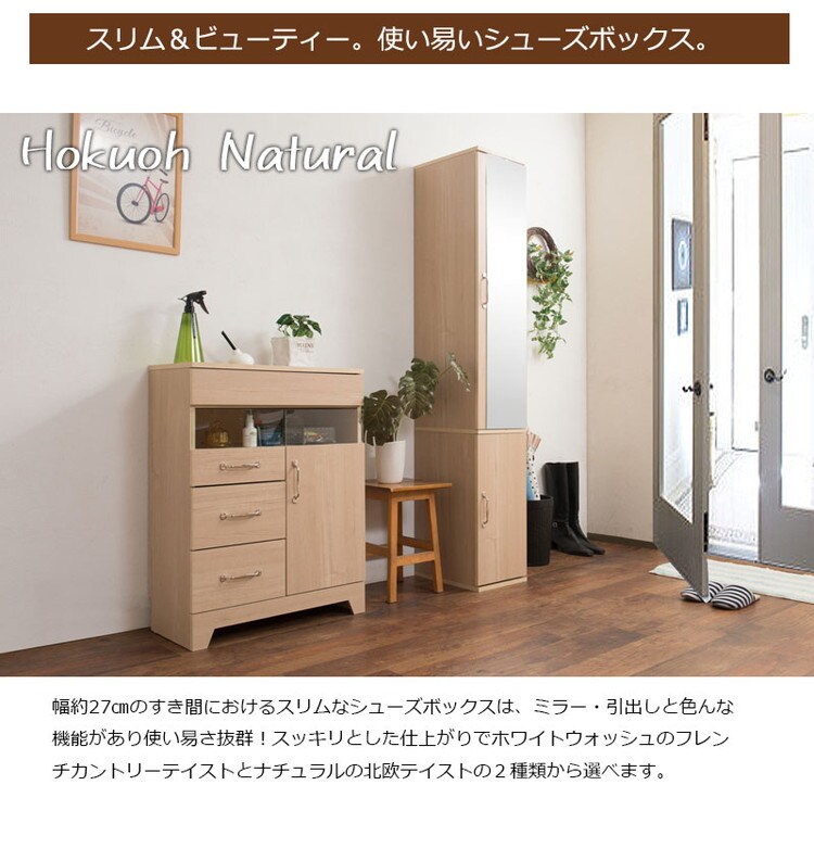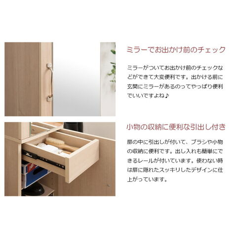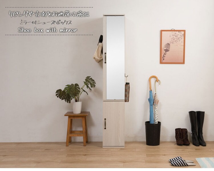 一人暮らしなどコンパクトに使えるミラー付きラックは木目の綺麗なホワイト、ナチュラルの2色から。
