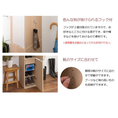 シューズラック 幅27 ナチュラル ミラー付き フック 省スペース 高さ調整 鏡 下駄箱 シューズボックス ミラー 姿見 おしゃれ スリム すきま 靴 スリッパラック 靴箱 ブーツ ラック 収納 棚【送料無料】