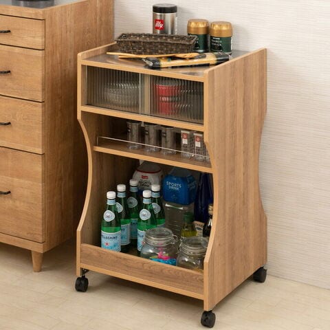 キャスター付きキッチンワゴン ヴィンテージオーク 収納 家具 シンプル おしゃれ 北欧 キッチン オープン ワゴン 引き戸付き【送料無料】