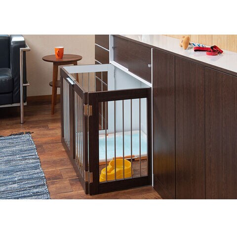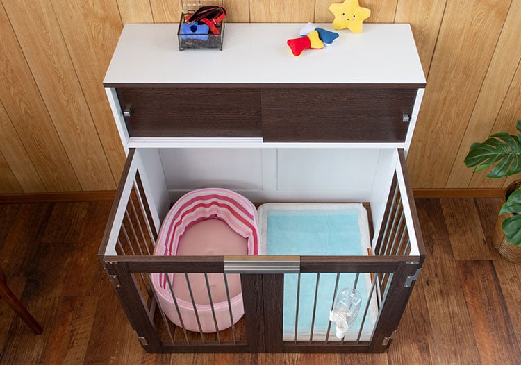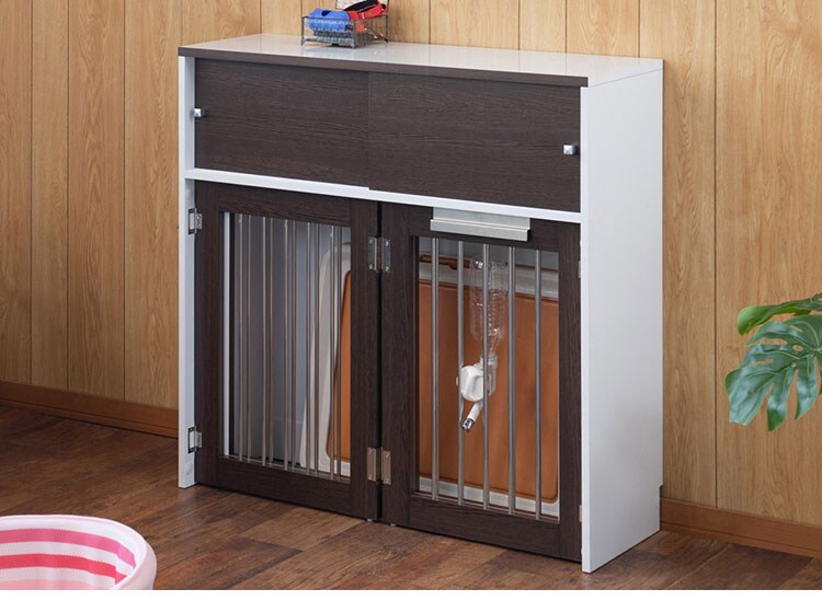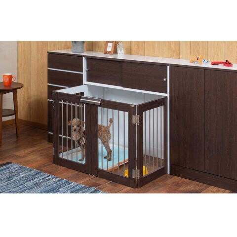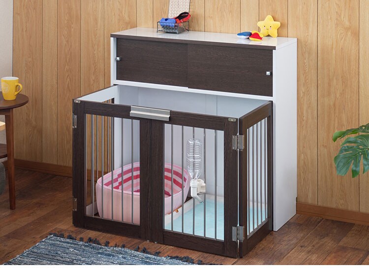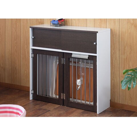 Calm 折りたたみ式ペットゲージ ダークブラウン 引き戸収納庫付き 犬 猫 ゲージ ペット ケージ ペットケージ 小屋 サークル ゲージ サークルケージ キャットケージ 室内 犬小屋【送料無料】