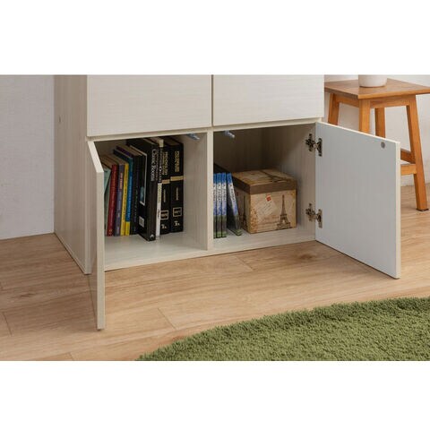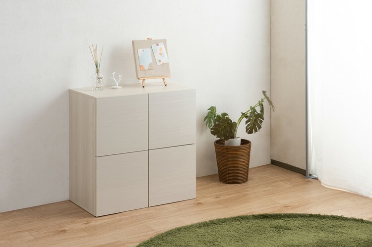 ■商品について/リビングや色んな場所でごちゃつく物を綺麗に大量収納でき、どんなお部屋にも合うデザイン・色合いのスクエアキャビネット【SANDY】サンディシリーズが新登場!シンプルなデザインながらも、様々な便利機能を兼ね備えたキャビネットです。北欧のテイストのお部屋になじむパールホワイト色と、カントリーなどのテイストに合うマリンナチュラル色の2色展開。単体でのご使用や、シリーズで揃えてのご使用など様々な使い方ができます♪シンプルでコンパクトなデザインながらも、中はたっぷり収納できる大容量。A4ファイルや書類が収納可能な奥行になっています。天板はテレビを乗せても大丈夫な作りでテレビ台としてもご使用可能。コード穴もあり、ごちゃつく配線などをすっきりまとめることができ、ルーターやゲーム機などを収納可能なので大変便利です。リビングはもちろん、書斎や寝室、ランドリーなどでも活躍する便利なスクエアキャビネットです。