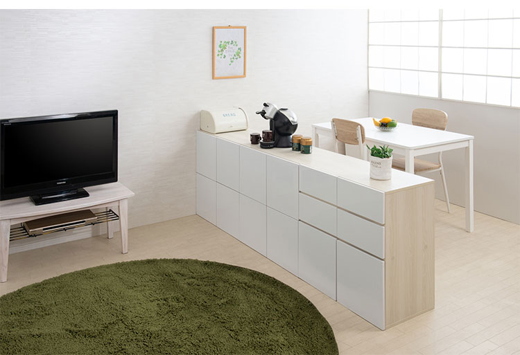 ■商品の仕様/前面:ハイグロス化粧繊維板、その他:プリント紙化粧繊維板