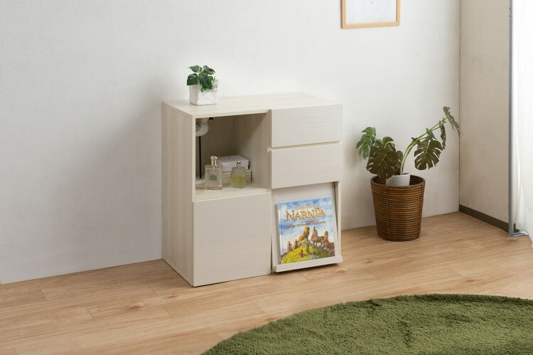 ■商品について/リビングや色んな場所でごちゃつく物を綺麗に大量収納でき、どんなお部屋にも合うデザイン・色合いのスクエアキャビネット【SANDY】サンディシリーズが新登場!シンプルなデザインながらも、様々な便利機能を兼ね備えたキャビネットです。北欧のテイストのお部屋になじむパールホワイト色と、カントリーなどのテイストに合うマリンナチュラル色の2色展開。単体でのご使用や、シリーズで揃えてのご使用など様々な使い方ができます♪シンプルでコンパクトなデザインながらも、中はたっぷり収納できる大容量。A4ファイルや書類が収納可能な奥行になっています。天板はテレビを乗せても大丈夫な作りでテレビ台としてもご使用可能。コード穴もあり、ごちゃつく配線などをすっきりまとめることができ、ルーターやゲーム機などを収納可能なので大変便利です。リビングはもちろん、書斎や寝室、ランドリーなどでも活躍する便利なスクエアキャビネットです。