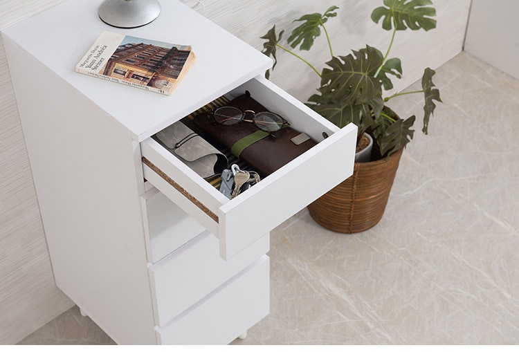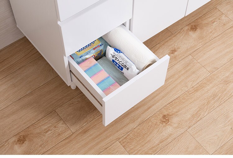明るいホワイトカラーをベースに引出しと扉を使いやすい位置に配置したキャビネットシリーズ。スリムな約30cm幅はデッドスペースや玄関などにちょいっと置けるおしゃれなチェスト。リビングで細々したモノの収納に、玄関でマスク収納などあらゆる用途で使えます。