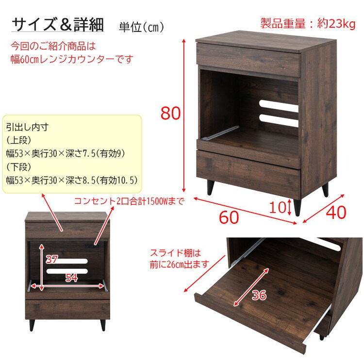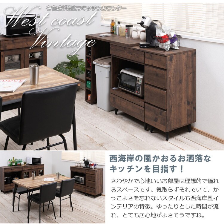 arizona キッチンカウンター 幅60 ビンテージ ヴィンテージ コンパクト レンジ収納 一人暮らし 新生活 引出し 炊飯器 トースター収納 リビング キッチン スライド 家電収納 家電ラック【送料無料】