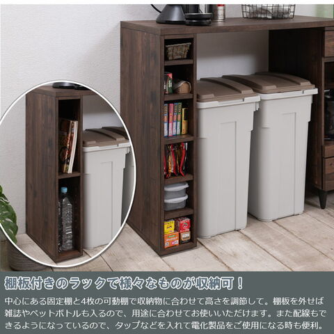 中心にある固定棚と4枚の可動棚で収納物に合わせて高さを調節して棚板を外せば、雑誌やペットボトルも入るので、用途に合わせてお使いいただけます。