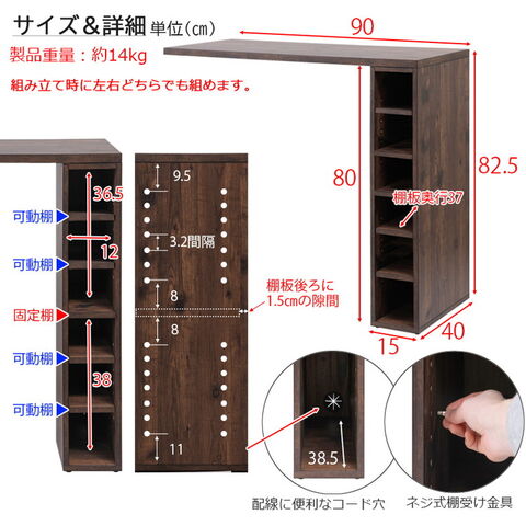 オープン部内寸:(約)幅12×奥行38.5(棚板37後部1.5cm配線用隙間あり)×高さ(上)36.5(下)38cm