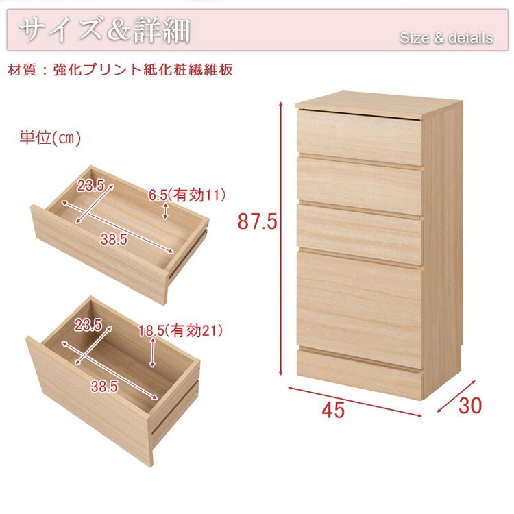 marine カウンター下収納 幅45 リビング おしゃれ 取っ手 収納ケース タンス 薄型 一人暮らし 新生活 kitchen 台所収納 小物収納 ナチュラル 木目調【送料無料】