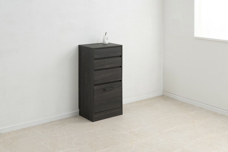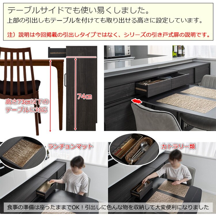 Blacker 引戸式カウンター下収納チェスト 幅45 4段 ブラック キッチン キッチン収納 ダイニング カトラリー ラック 引出し 引き出し タンス 隙間 ストッパー付き レール付 グレー 黒木目【送料無料】のレビュー