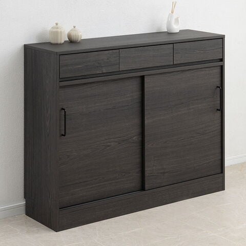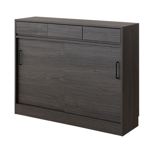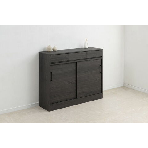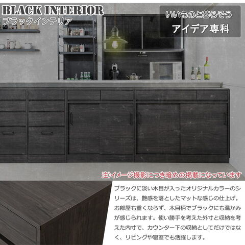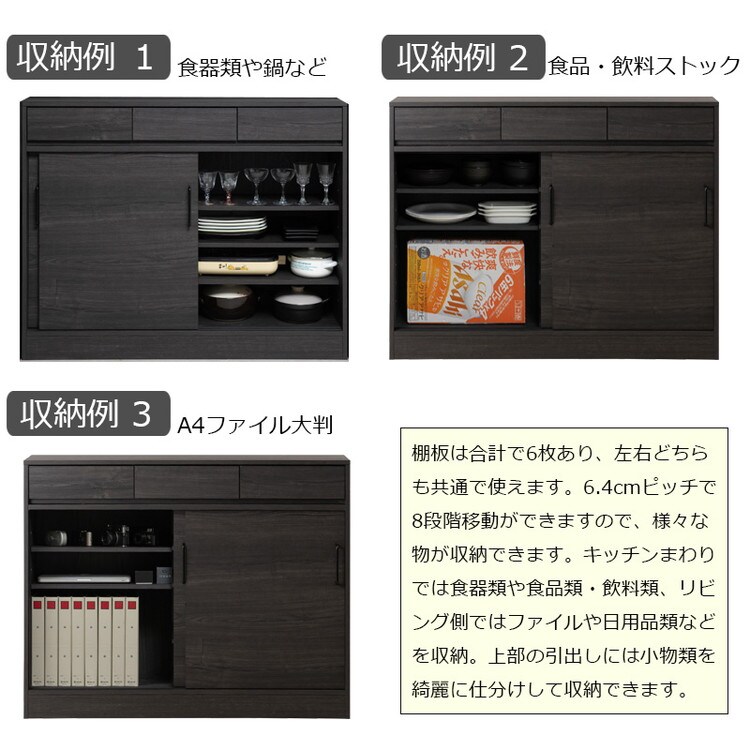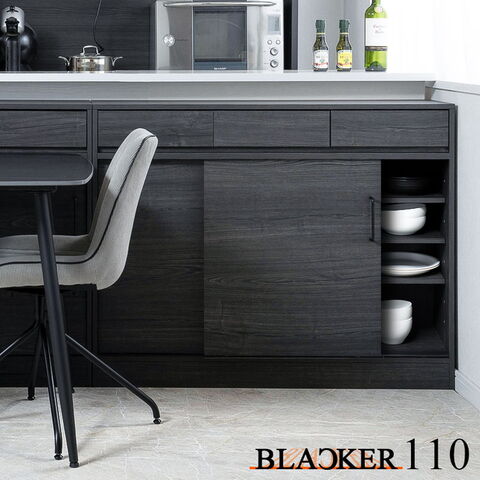 Blacker 引戸式カウンター下収納キャビネット 幅110 ブラック キッチン キッチン収納 引き戸 食器収納 食器棚 ラック 可動棚 間仕切り 木製 ストッカー 台所 グレー 黒木目 A4ファイル収納【送料無料】