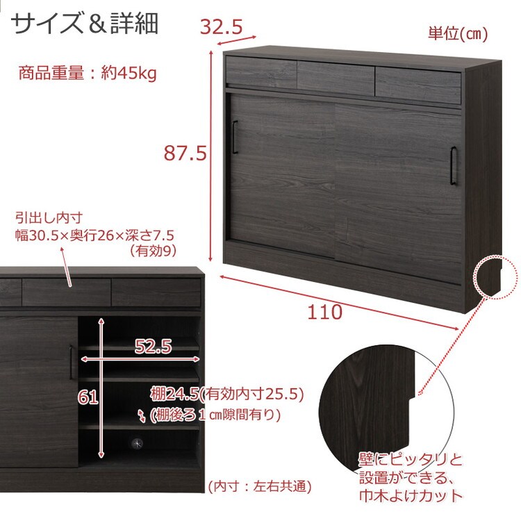 本体:(約)幅110×奥行32.5×高さ87.5cm