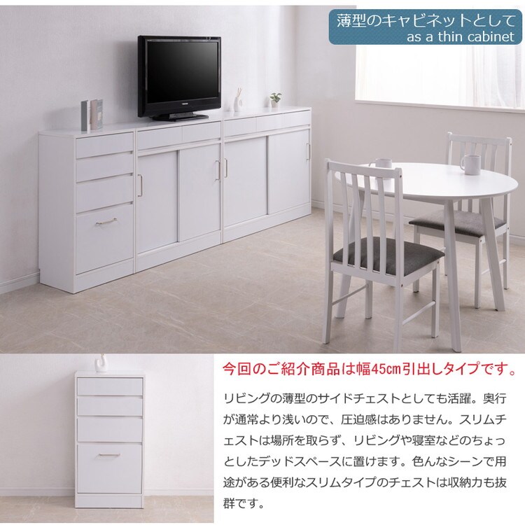 SIRO 引戸式カウンター下収納チェスト 幅45 4段 キッチン キッチン収納 ダイニング カトラリー カトラリー収納 ラック サイドボード 窓下 引出し 引き出し タンス 隙間 ストッパー付き レール付【送料無料】