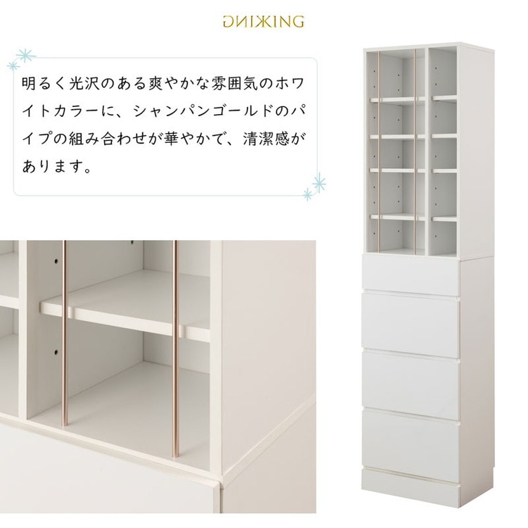 シャンパンゴールドのパイプが華やかで清潔感があり、引出し付きで大容量収納ができるオールインワンチェストKINGシリーズが新登場!