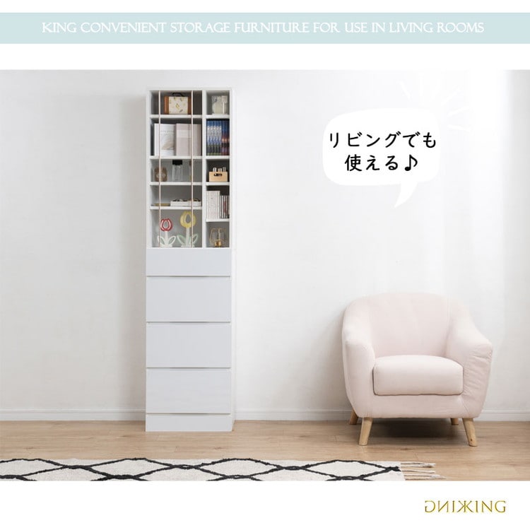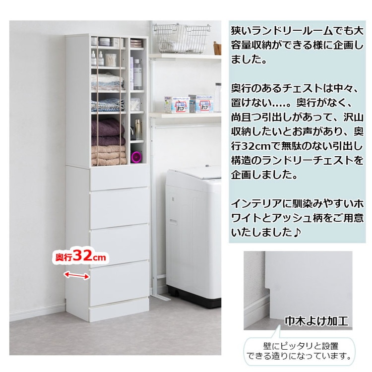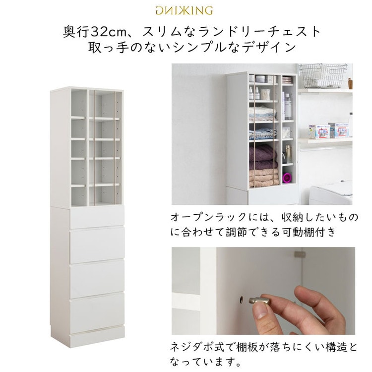 KING ランドリーチェスト 幅45.5 省スペース 洗面所 シンプル おしゃれ オープン棚 台 引出し 引き出し チェスト 衣類収納 タオル収納 脱衣所 ランドリーラック オープンラック 木製 白【送料無料】