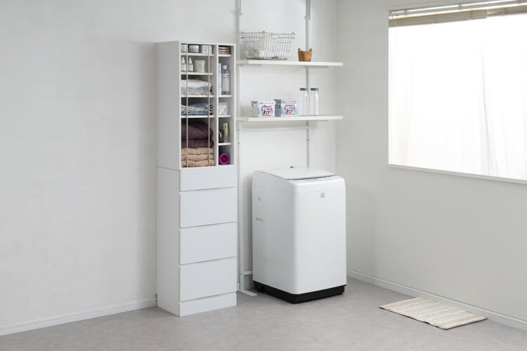 一見シンプルなゆえ使いやすさはもちろん、アクセントパイプ効果で高見えするお洒落アイテムです。スリムとワイドの2サイズ・木目のない単色シンプルホワイト・木目際立つアッシュナチュラルの2カラーから選択ください。