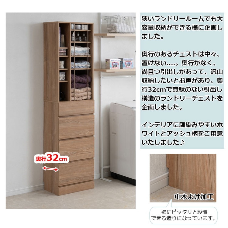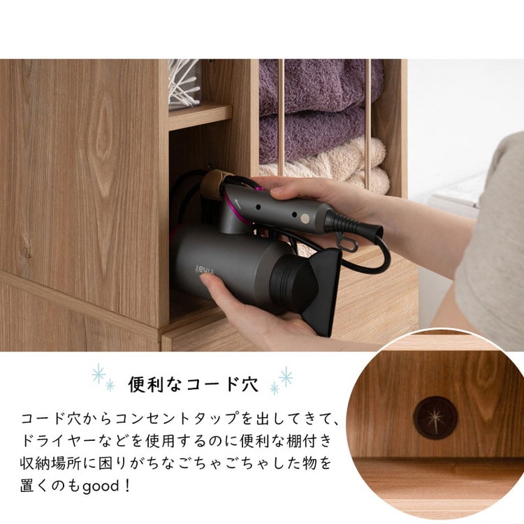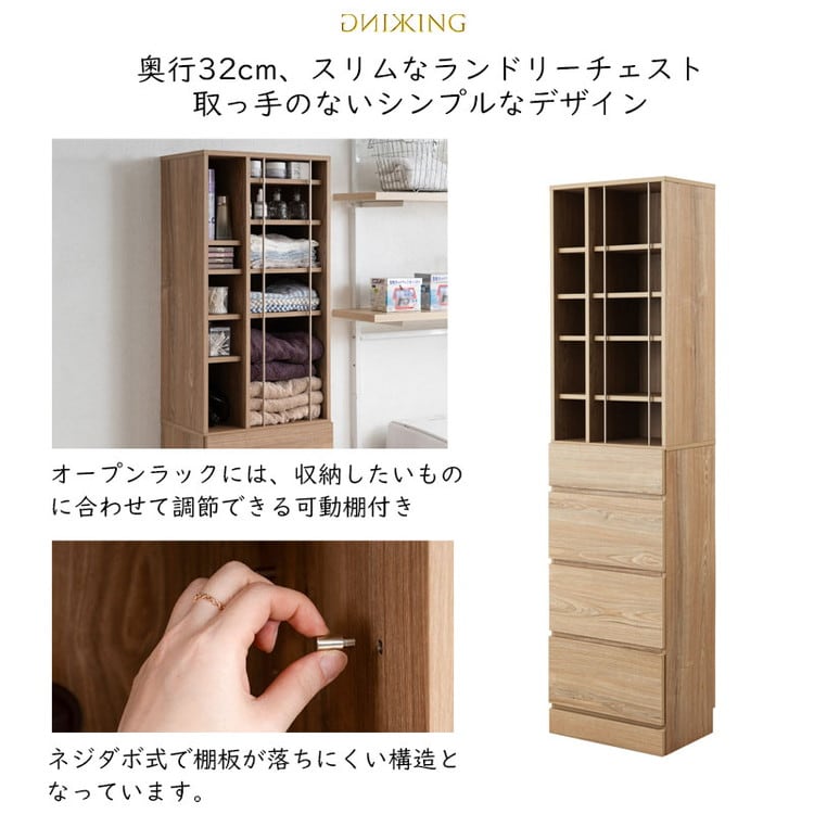 KING ランドリーチェスト 幅45.5 省スペース 洗面所 シンプル オープン棚 台 引出し 引き出し チェスト 衣類収納 タオル収納 脱衣所 ランドリーラック オープンラック 木製 ナチュラル【送料無料】