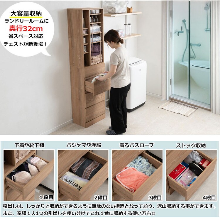 引出しは、しっかりと収納ができるように無駄のない構造となっており、沢山収納する事ができます。また、家族1人1つの引出しを使い分けてこれ1台に収納する使い方も◎。