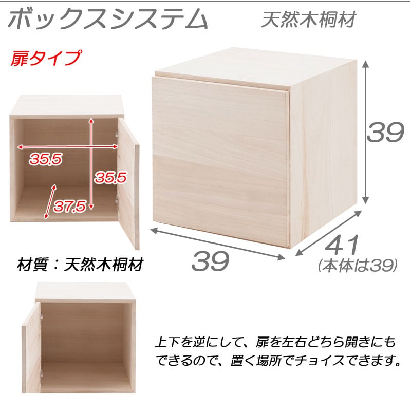 ラック 扉付き 天然木 桐材 幅39 キューブボックス 完成品 木製 白 木目 おしゃれ 一段 組み合わせ 収納 北欧 正方形 カラーボックス 箱【送料無料】