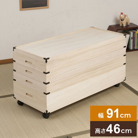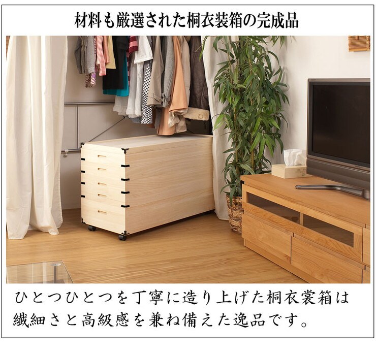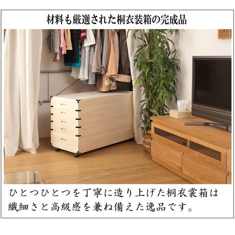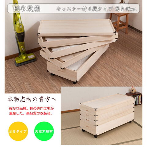キャスター付き 桐衣装箱 4段 高さ46cm 金具付き 衣装ケース 押入れ クローゼット 桐たんす 衣裳ケース 着物 衣類収納 洋服 浴衣【送料無料】