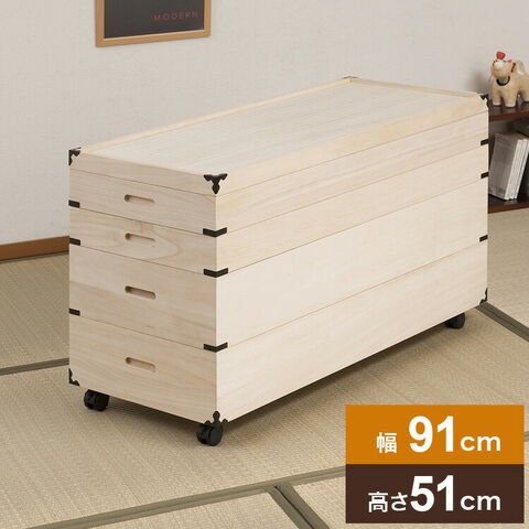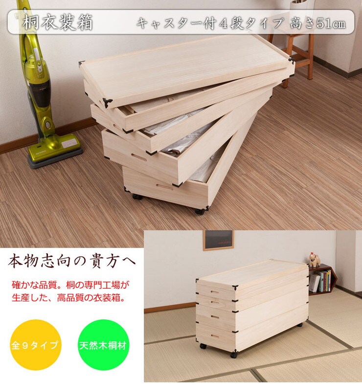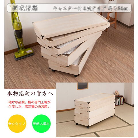 キャスター付き桐衣装箱 4段 高さ51 隅金具付 桐ケース 衣装ケース 押入れ クローゼット 桐たんす 保管庫 保管ケース 着物 衣類収納 洋服 浴衣【送料無料】