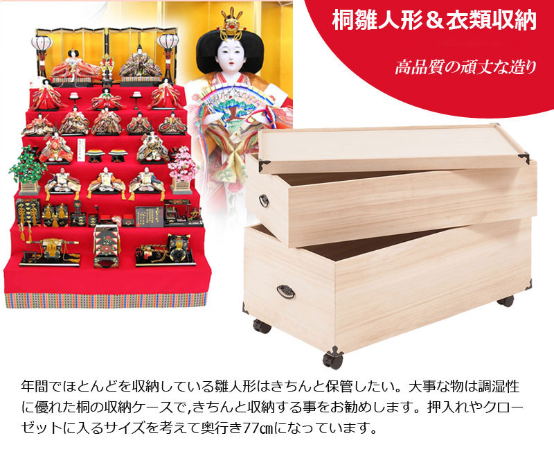 完成品 総桐 雛人形 収納 ケース 2段 高さ54.5cm 幅42cm 奥行き77cm 雛人形入れ 収納ケース 押入れ 押入れ収納 二段 人形ケース 雛人形収納 押入れ 桐【送料無料】