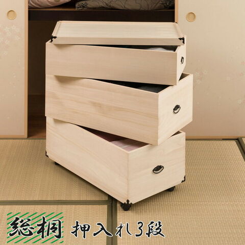 総桐押入れ収納ケース 3段 高さ81.5cm 収納 押入れ収納 ケース ボックス 箱 桐 桐ケース 和室 衣類収納 和風【送料無料】