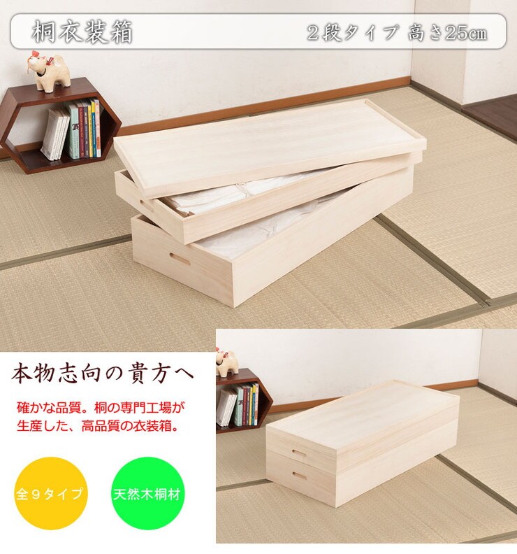 衣裳ケース 桐 衣装ケース 衣装箱 2段 幅91 奥行き41 高さ25 天然木 木製 コンパクト 押入れ 押入れ収納 完成品 衣裳箱 浴衣 和室 和風【送料無料】のレビュー