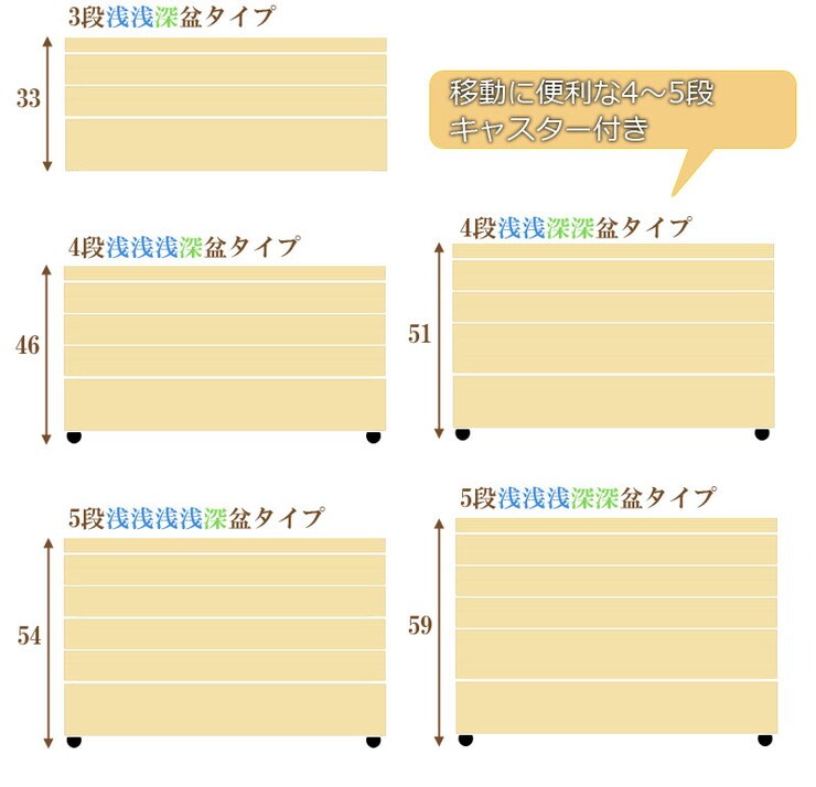 別売りの衣装盆で買い足し積み重ねができるので増える着物と洋服をしっかり収納。