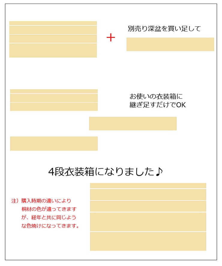 別売りの衣装盆で買い足し積み重ねができるので増える着物と洋服をしっかり収納。