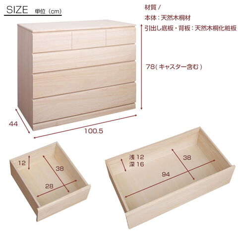 ■商品の仕様/本体:天然木桐材、引出し底板・背板:天然木桐化粧板